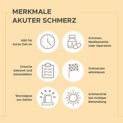310 Edukation von Menschen mit akuten und chronischen Schmerzen 166 3101 Patienteneinbindung im Schmerzmanagement 167 3102 Prä- und postoperative Patientenedukation 168 3103 Edukation bei nicht-tumorbedingten chronischen Schmerzen 169 3104 Edukation bei langfristiger Opioidtherapie nicht-tumorbedingter chronischer Schmerzen 172. Sie zeigen uns wo Reizungen Wunden oder Entzündungen entstanden sind und ob sie sich möglicherweise ausbreiten. Akuter versus chronischer Schmerz Der akute Schmerz wird meist durch eine akute Erkrankung oder Verletzung hervorgerufen.